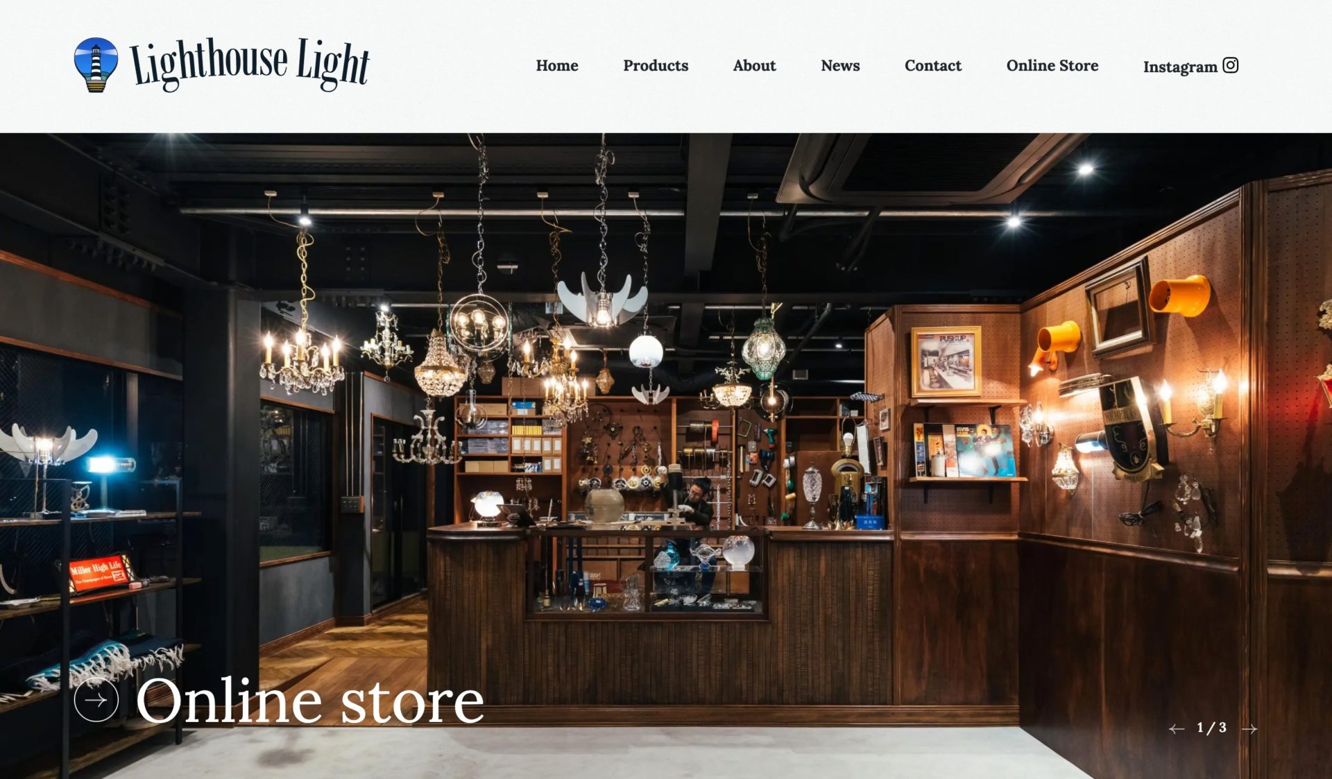 アンティーク・ヴィンテージ照明専門店「Lighthouse Light」様の新規Webサイト、ディレクションとデザインを担当いたしました。 「見る時間帯によって変わるデザイン」あなたがこのサイトを訪れた時、ロゴの色・トップページの雰囲気はどうでしょうか。趣きを感じる褪せた風景か、鮮やかな夕暮れか、はたまた暗闇に溶け込む深い青の世界か。いろんな時間に訪れてみてほしいです。灯台は、どんな時でも光を届けてくれているはず。